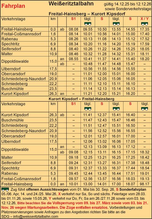 | Wartungsarbeiten kein Zugverkehr 10.03. bis 28.03.2025 sowie 03.11. bis 25.11.2025 |
